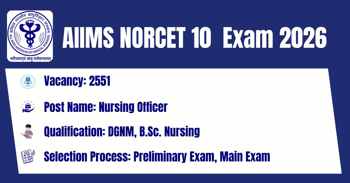 The All India Institute of Medical Sciences (AIIMS), New Delhi, has released the official recruitment notification (No: 17/2026) for the Nursing Officer Recruitment Common Eligibility Test (NORCET) 10. This is a massive opportunity for nursing aspirants across India, looking to fill over 2551 vacancies in various AIIMS institutions nationwide.