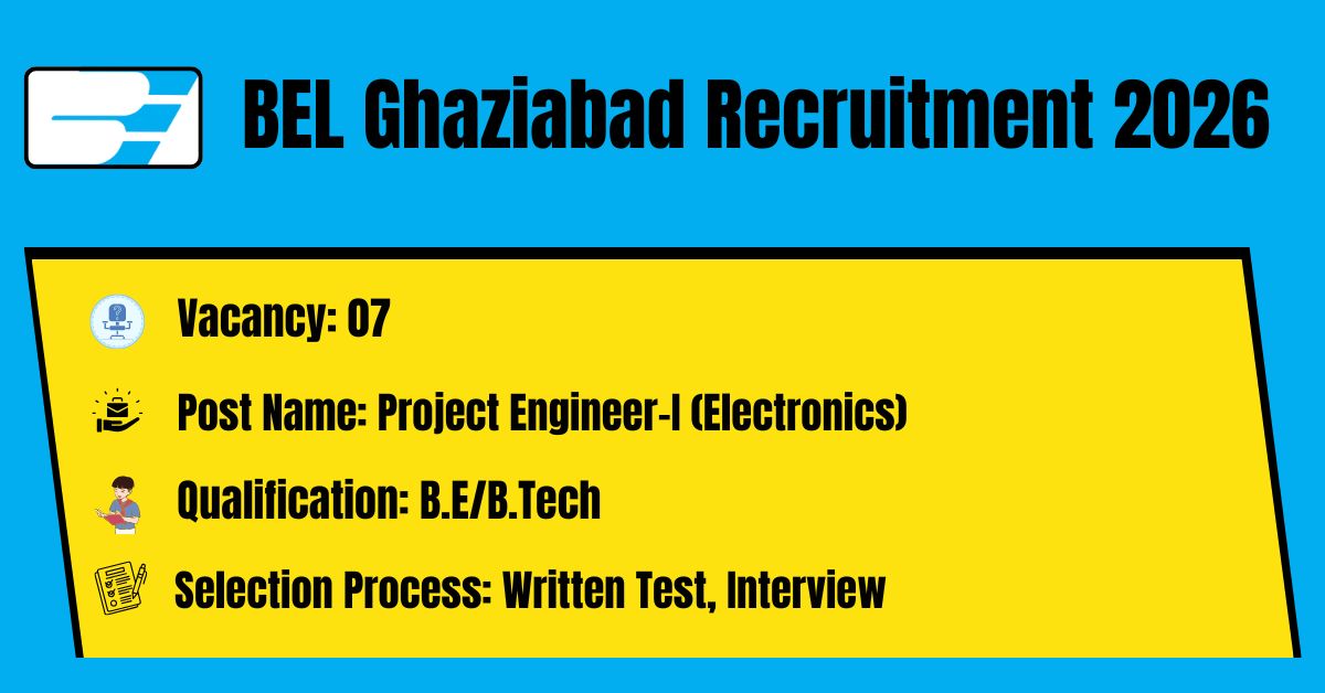 BEL Ghaziabad has released the recruitment notification No: 12949/HR/GAD/PE/2026/08 to fill the 07 Project Engineer-I (Electronics) Posts. The application form should be downloaded in PDF format from the official website @ https://bel-india.in/. The last date for the receipt of Filled application along with all enclosures is 15.03.2026. Before submitting an application, candidates must carefully read the BEL Ghaziabad Project Engineer notification and verify their eligibility.