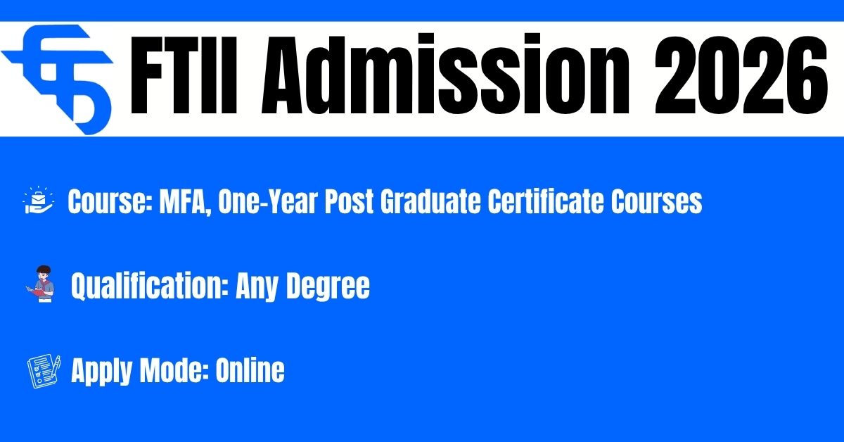 Film and Television Institute of India Admissions 2026: The Film and Television Institute of India, a Deemed to be University & an Autonomous Institute under Ministry of Information and Broadcasting, Government of India, has officially opened the online application window for the Master of Fine Arts (MFA) in Cinema and One-Year Post Graduate Certificate Courses in TV Courses for the 2026 academic session. To qualify for the MFA and One-Year Post Graduate Certificate Courses 2026 entrance exam, Candidates who have completed their graduation from an accredited university are eligible to apply for competitive examination this year.