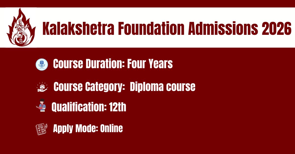 Kalakshetra Foundation Admissions 2026: The Rukmini Devi College of Fine Arts, an autonomous body under the Ministry of Culture, Government of India, has released the official notification for admission to its prestigious four-year full-time Diploma courses. If you are a 12th-standard student this is your gateway to a government-recognized career in the performing and visual arts.