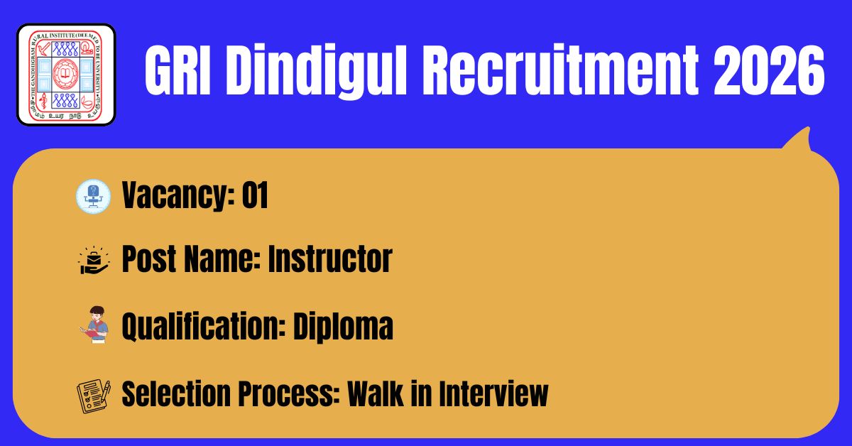 GRI Dindigul has released the recruitment notification to fill the 01 Instructor in Khadi and Handloom Technology Posts. The application form should be downloaded in PDF format from the official website @ https://www.ruraluniv.ac.in/. Before submitting an application, candidates must carefully read the GRI Instructor 2026 notification and verify their eligibility.