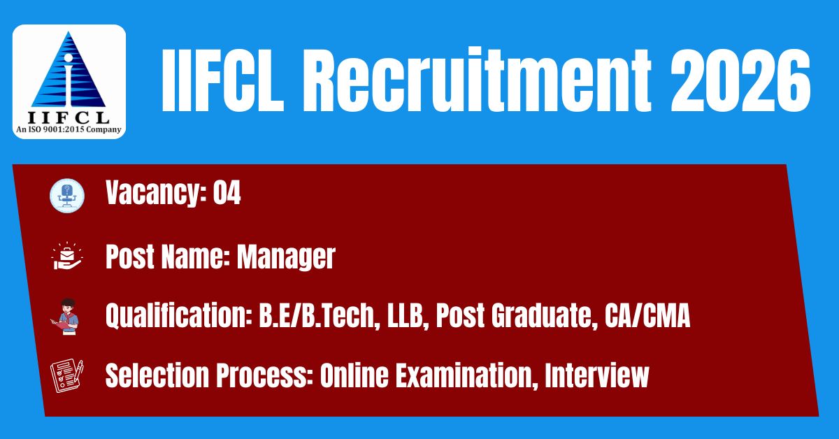 The India Infrastructure Finance Company Limited has released its latest official recruitment notification (Advt. No. IIFCL/HCM/2026/03) to fill the 04 Manager (Grade B) Posts. Candidates may get the details of On-line Application, Detailed Advertisement, General Instructions and apply Online on the official Web-site of this India Infrastructure Finance Company Limited i.e. https://iifcl.in/. The link for submission of On-line Application Form will remain active from 18.03.2026 to 10.04.2026.