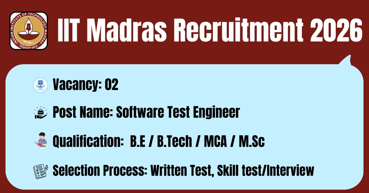 IIT Madras Recruitment 2026 Software Test Engineer Posts; Apply Now!