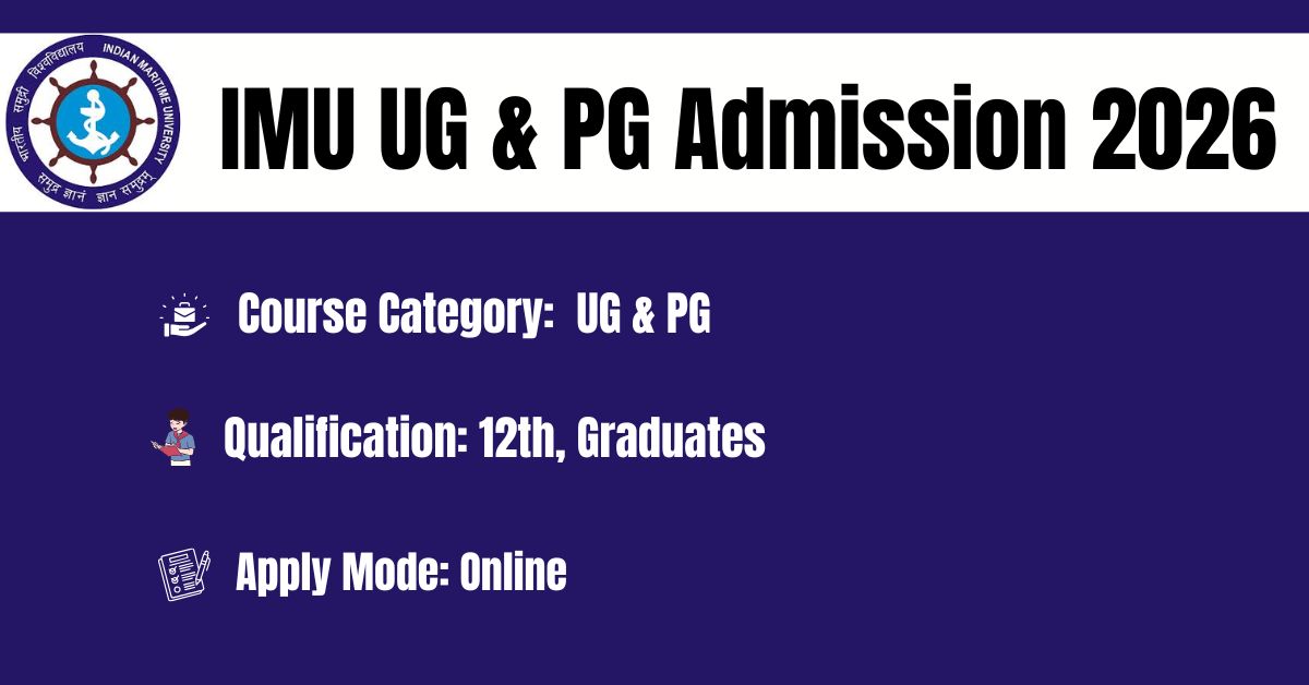 Indian Maritime University (IMU) is inviting online Applications for Common Entrance Test (CET) for admission to Pre-Sea Courses Diploma in Nautical Science, B.Sc. (Nautical -Science) and B.E / B.Tech. (Marine Engineering) to any MTI (Govt. or Private- Affiliated to any University) are required to qualify in IMU-CET. The IMU CET 2026 is going to be conducted by IMU as per the Schedule given in the Information at a Glance for admission to UG & PG Courses.