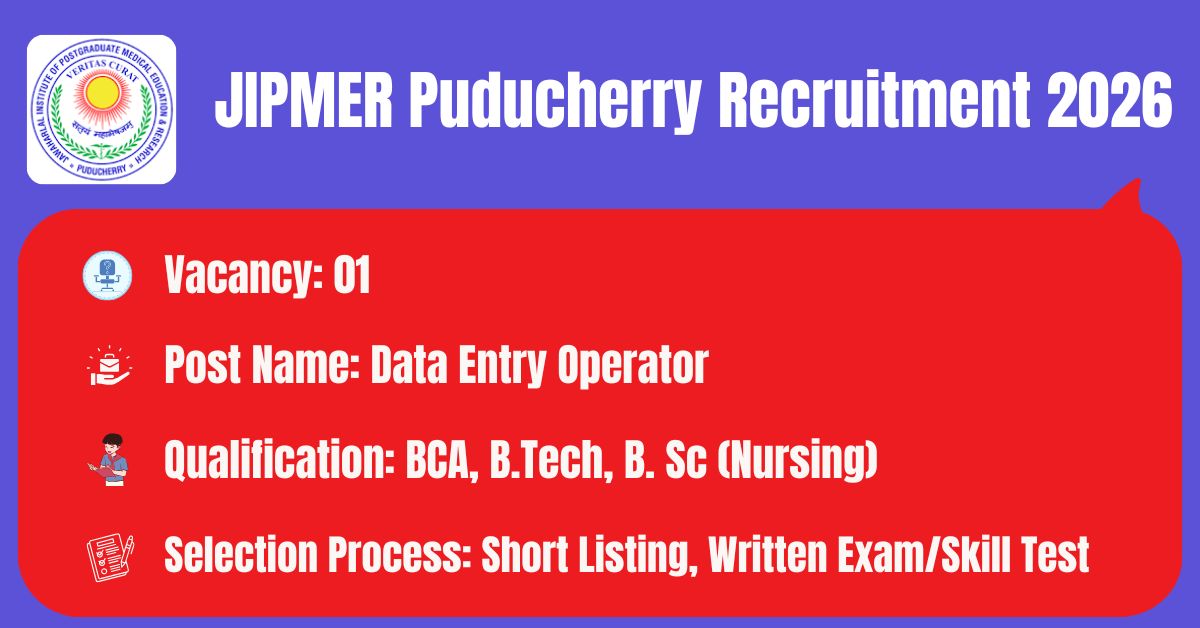 JIPMER Puducherry Recruitment 2026 Data Entry Operator Posts; Apply Now!