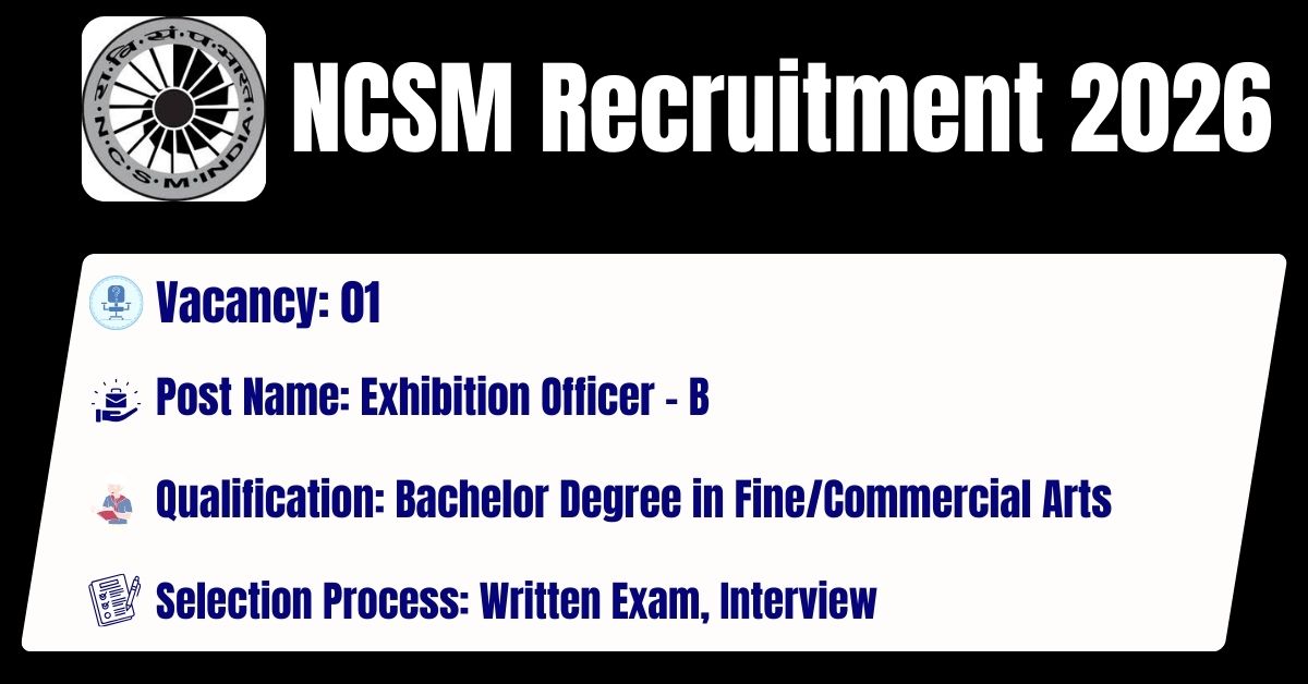 NCSM Recruitment 2026 Exhibition Officer – B Posts; Apply Now!