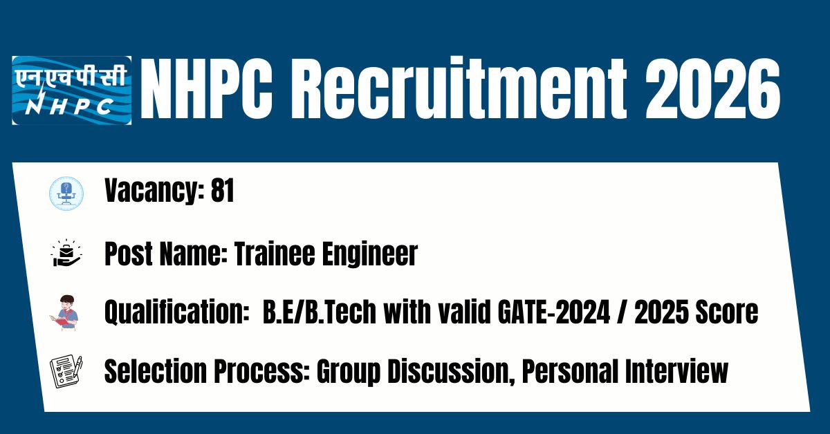 | Online Application Form for NHPC: Click Here to Apply |