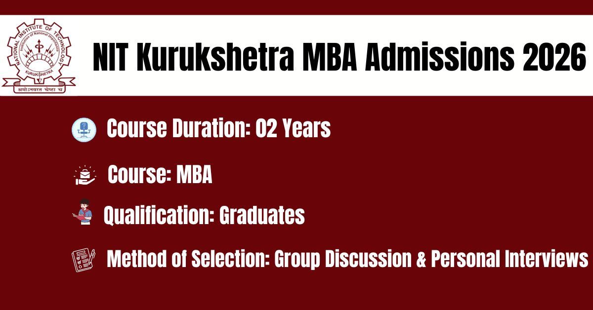 NIT Kurukshetra Admissions 2026-28: Department of Business Administration NIT, Kurukshetra is seeking applications from bright aspirants for admission into 2-years full time MBA Programme for the session 2026-28.8. This MBA admission is strictly for Graduate Students.