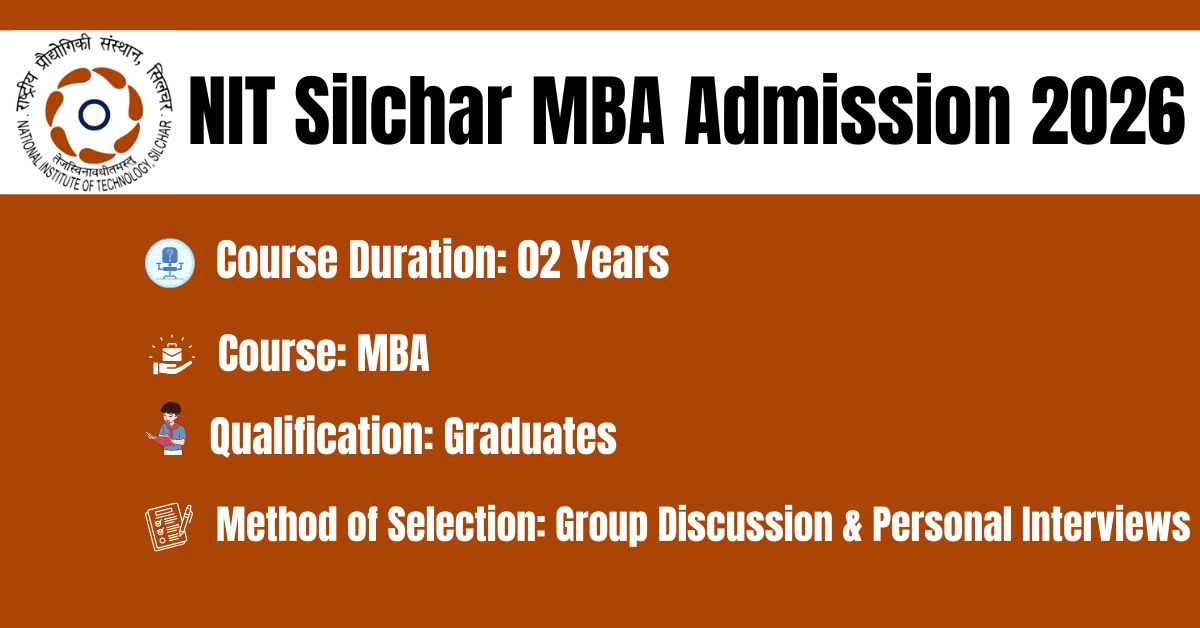 NIT Silchar Admissions 2026-28: The Department of Management Studies, NIT Silchar is seeking applications from bright aspirants for admission into Two years full time MBA Programme for the session 2026-28. This MBA admission is strictly for Graduate Students.