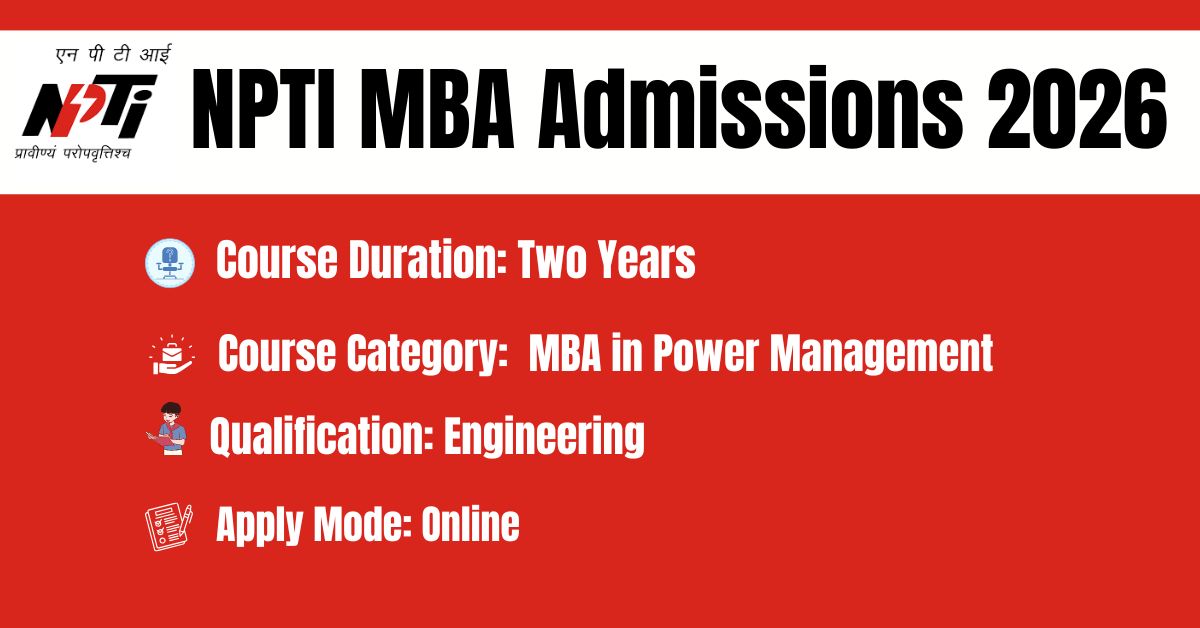 NPTI Admissions 2026: The National Power Training Institute, an autonomous body under the Ministry of Power, Government of India, has released the official notification for admission to its prestigious Two Years full-time MBA in Power Management courses. This MBA admission is strictly for Engineering Students.