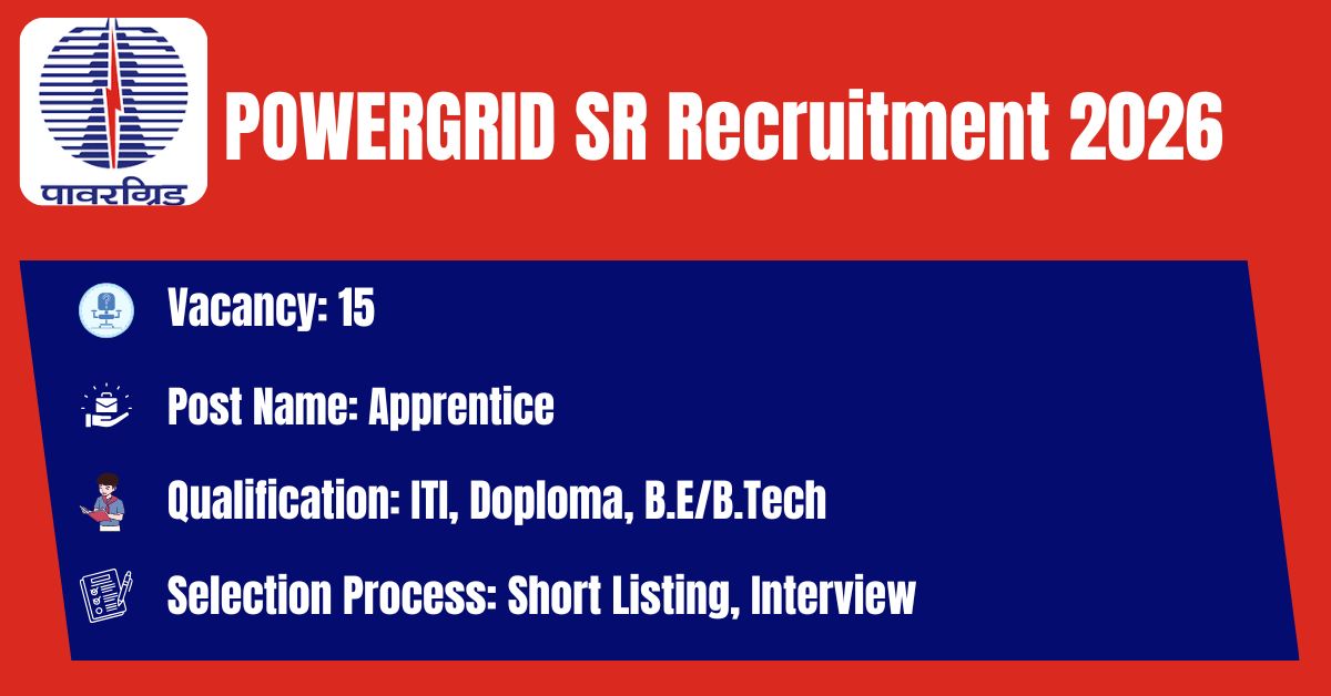 POWERGRID SR has released the recruitment notification No: Apprenticeship/2025-26/SR-II/02 to fill the 15 Apprentice Posts. The online application portal at the official website (https://www.powergrid.in/) will remain active from 02.03.2026 to 11.03.2026. Before submitting an application, candidates must carefully read the POWERGRID SR Apprentice 2026 notification and verify their eligibility.