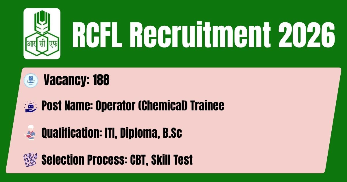 The RCFL – Rashtriya Chemicals and Fertilizers Limited has released its latest official recruitment notification (Advt. No. 17022026) to fill the 188 Operator (Chemical) Trainee Posts. Candidates may get the details of On-line Application, Detailed Advertisement, General Instructions and apply Online on the official Web-site of this RCFL – Rashtriya Chemicals and Fertilizers Limited i.e. https://www.rcfltd.com/. The link for submission of On-line Application Form will remain active from 11.04.2026 at 8:00 am to 27.04.2026 at 5:00 pm.