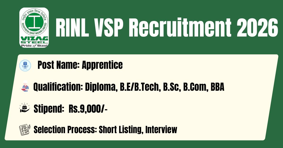 The Rashtriya Ispat Nigam Limited–Visakhapatnam Steel Plant has released its latest official recruitment notification to fill the Apprentice Posts.The online application portal at the official website (https://www.vizagsteel.com/) will remain active from 26.02.2026 to 10.03.2026. Before submitting an application, candidates must carefully read the RINL VSP Apprentice 2026 notification and verify their eligibility.