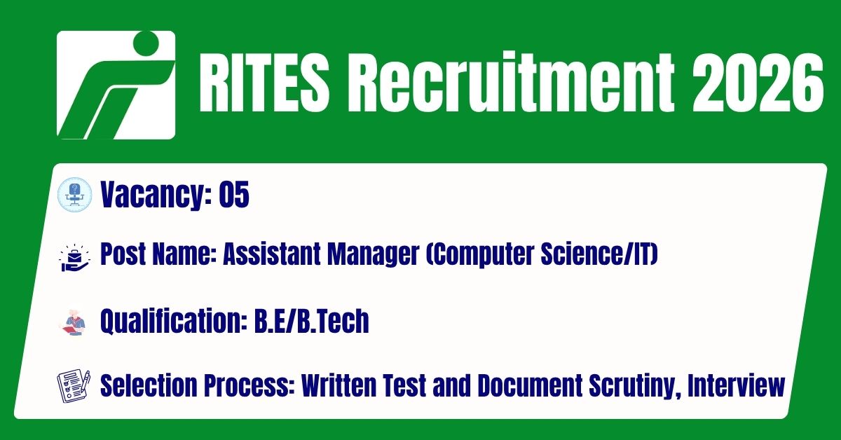 The Rail India Technical and Economic Service has released its latest official recruitment notification (Advt. No. RG/08-10/26) to fill the 05 AM (IT/Network & security), AM (IT/Programming), AM (IT/Data Centre) Posts. Candidates may get the details of On-line Application, Detailed Advertisement, General Instructions and apply Online on the official Web-site of this RITES Ltd i.e. https://rites.com/. The link for submission of On-line Application Form will remain active from 02.04.2026 to 27.04.2026.
