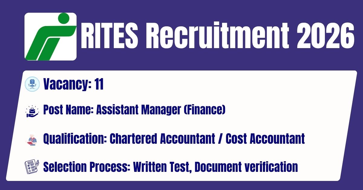 The RITES Ltd. has released its latest official recruitment notification (Advt. No. RG/08-R1/25) to fill the 11 Assistant Manager (Finance) Posts. Candidates may get the details of On-line Application, Detailed Advertisement, General Instructions and apply Online on the official Web-site of this RITES Ltd. i.e. https://rites.com/. The link for submission of On-line Application Form will remain active from 18.03.2026 to 27.04.2026.