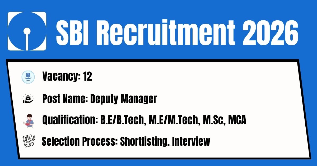 The State Bank of India has released its latest official recruitment notification (Advt. No. CRPD/SCO/2025-26/25) to fill the 12 Deputy Manager Posts.The online application portal at the official website (https://sbi.bank.in/) will remain active from 24.02.2026 to 16.03.2026. Before submitting an application, candidates must carefully read the SBI Deputy Manager 2026 notification and verify their eligibility.