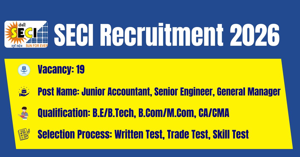 The Solar Energy Corporation of India Limited has released its latest official recruitment notification (Advt. No. 02/2026) to fill the 19 Senior Engineer Posts.The online application portal at the official website (https://www.seci.co.in/) will remain active from 23.02.2026 to 23.03.2026. Before submitting an application, candidates must carefully read the SECI Senior Engineer 2026 notification and verify their eligibility.