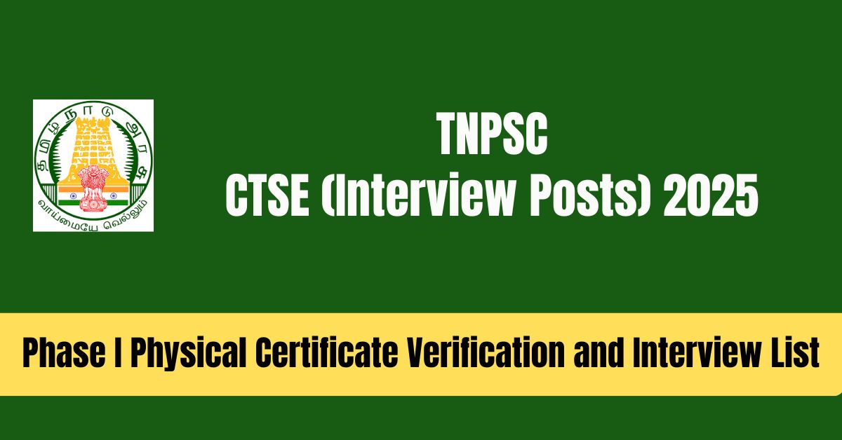 TNPSC CTSE (Interview Posts) 2025 Phase I Physical Certificate Verification and Interview:
