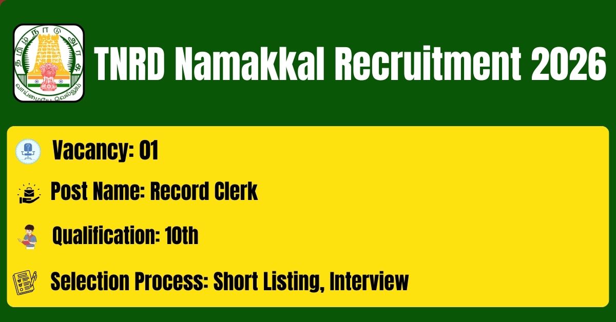 TNRD Namakkal has released the recruitment notification to fill the 01 Record Clerk Posts. The application form should be downloaded in PDF format from the official website @ https://Namakkal.nic.in/. The last date for the receipt of Filled application along with all enclosures is 20.02.2026. Before submitting an application, candidates must carefully read the TNRD Namakkal Record Clerk notification and verify their eligibility.
