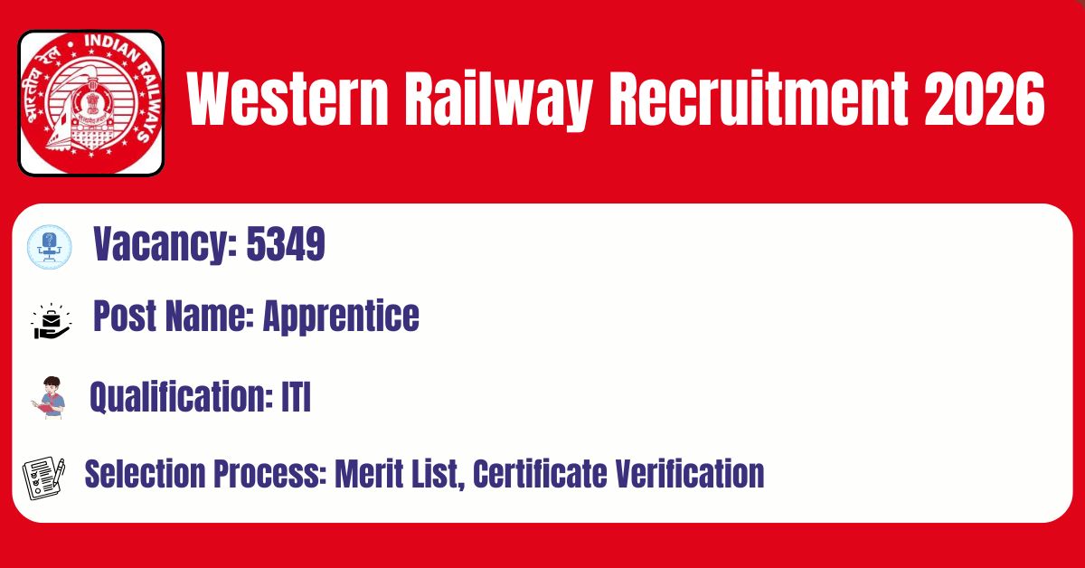 Western Railway has released the recruitment notification No: RRC/WR/04/2025 to fill the 5349 Apprentice Posts. This online facility will be available on the Official website @ https://www.rrc-wr.com/ from 21.02.2026 to 23.03.2026. Before submitting an application, candidates must carefully read the Western Railway Apprentice 2026 notification and verify their eligibility.